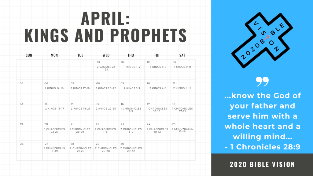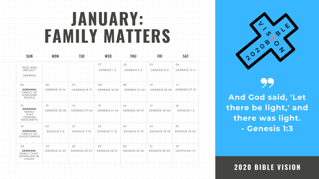 The 2020 Bible Vision reading plan, sermon schedule and church resources are all available on this spreadsheet. Printable monthly PDF’s are available below.